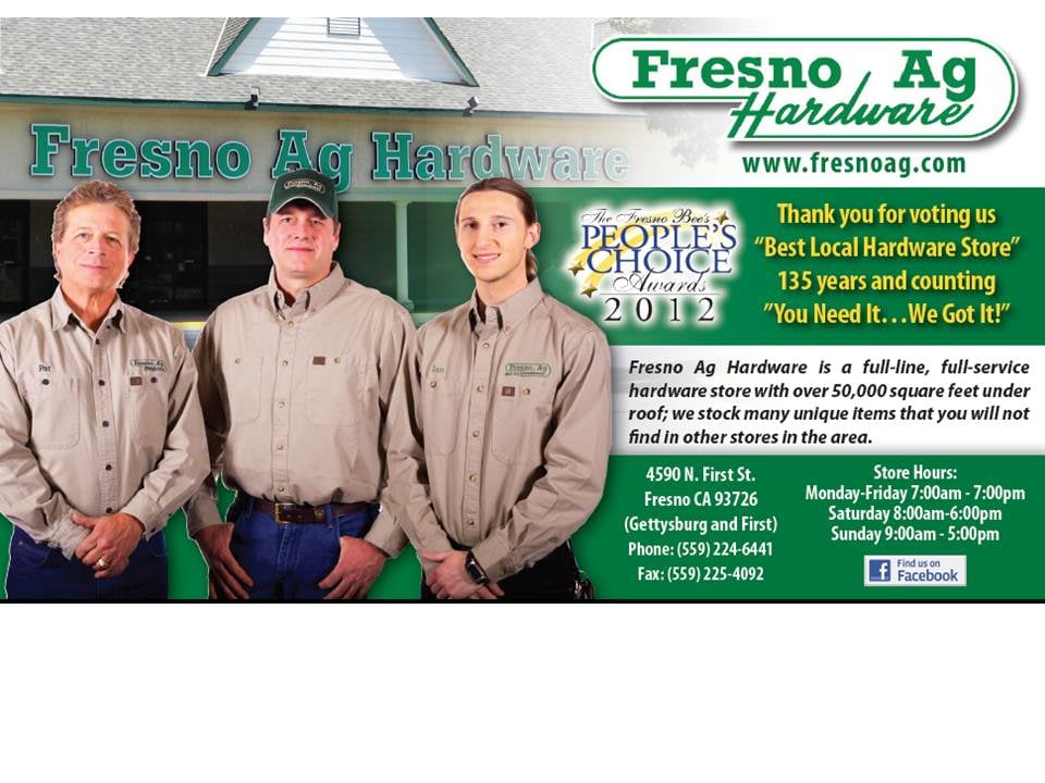 stackon-in-fresno - Fresno Ag Hardware from fresnoag.com They have very knowledgeable staff who really knows what they are doing, a huge variety of items, and it's easy to navigate. Hardware store in with addresses, phone numbers, and reviews. Home depot has every hardware item i have ever needed.