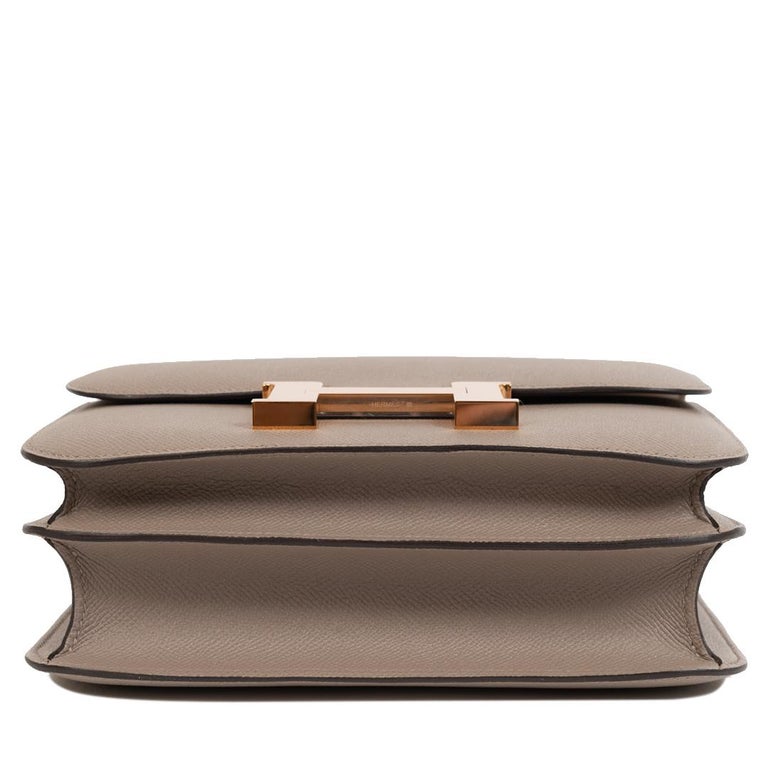 Hermes tasche bag flapbag schwarz kalbsleder constance vintage hardware kelly. This special order constance is in bordeaux and gris tourterelle epsom leather with rose gold hardware and has tonal stitching, h snap lock closure and adjustable shoulder strap. Check all others hèrmes constance 24 available. The most common hermes constance material is gold.