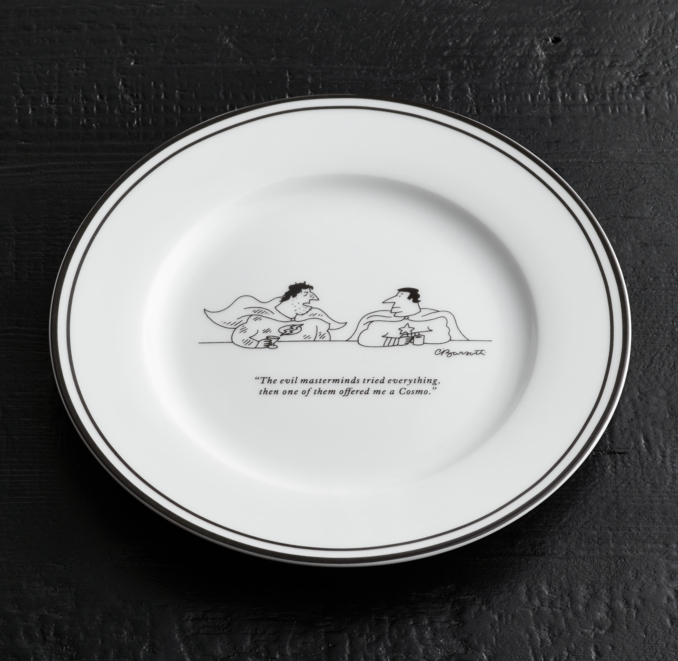 Get Restoration Hardware New Yorker Cheese Plates Images. Like new make / manufacturer: New yorker cartoon appetizer plate set of 6 wine cheese newspaper funny restoration hardware bar snack table party bartender gift humor art.