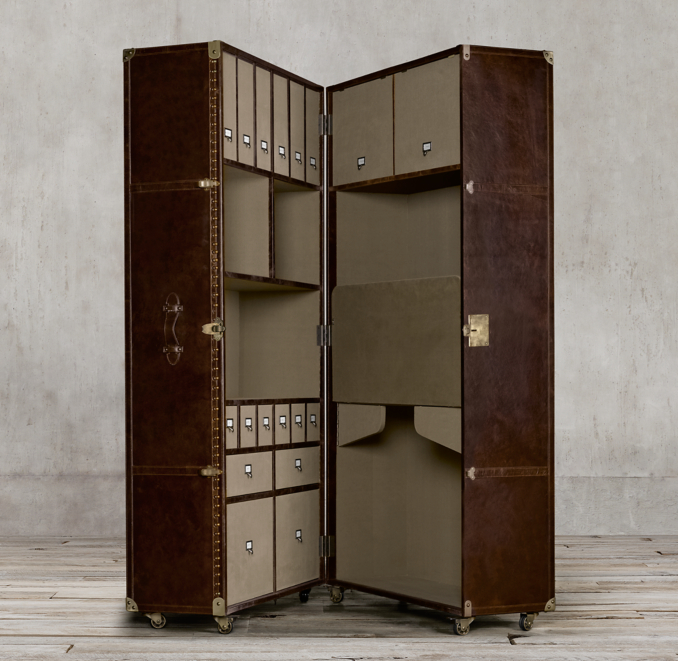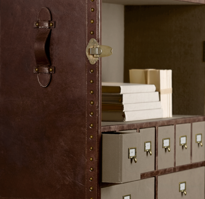Created by timothy oulton of london for restoration hardware provenance: Mayfair steamer secretary trunk vintage cigar leather. What makes it unique is that it is moveable without disturbing anything in your office. Restoration hardware steamer trunk secretary | chairish.